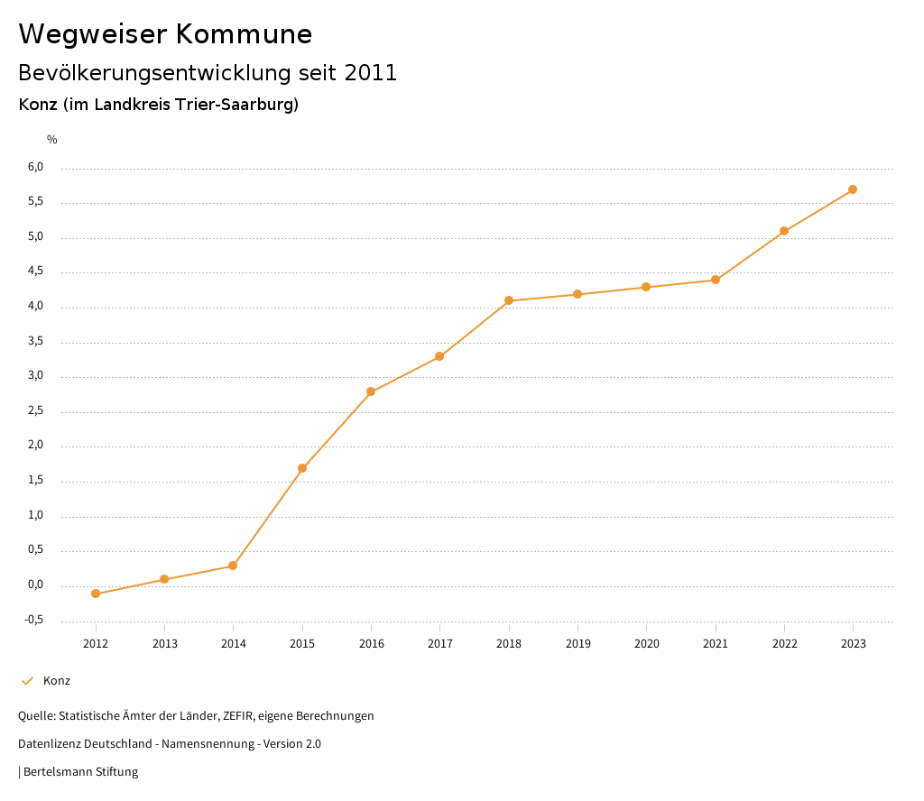 Bevölkerungsentwicklung über die letzten 5 Jahre
